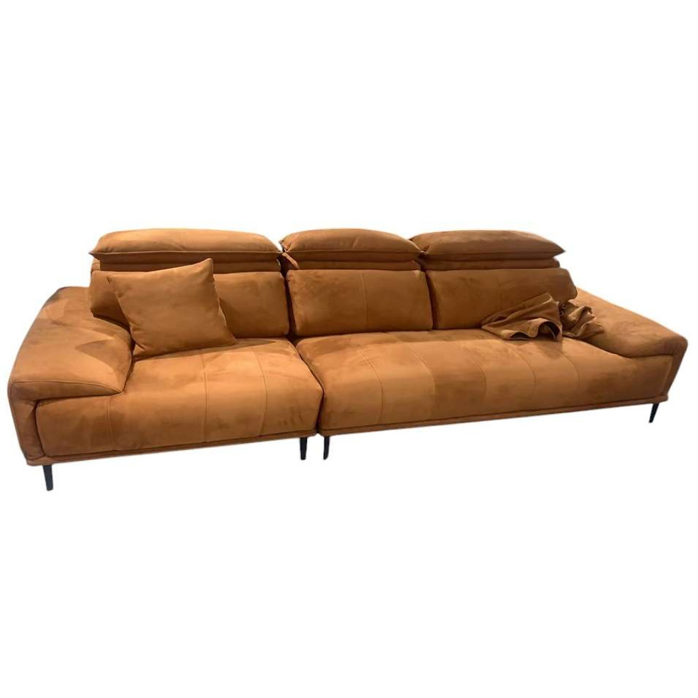 Designed to bring warmth and modern elegance, the Valentino Caramel 3-Seater is a statement piece that blends contemporary style with timeless comfort. Upholstered in a rich caramel brown fabric, its inviting tones and plush cushioning make it the perfect centerpiece for gatherings or quiet evenings. Sleek black metal legs add a refined touch while ensuring durability, and the adjustable headrests elevate the lounging experience with customizable support. Perfect for modern homes, lounges, or premium interiors, the Valentino Caramel offers both sophistication and functionality in one seamless design.